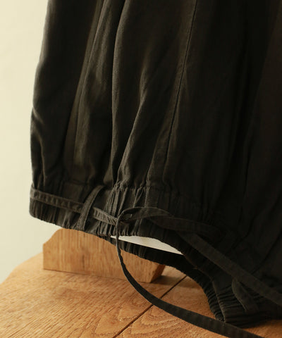 ◆BALI NATURAL DYE COLLECTION◆❝RE:COLOR❞ 【再生染めシリーズ】こちらの商品は、染色過程で色ムラやトーンの差が生じたアイテムに、RE:COLOR手法で新たな手法で新たな色を重ねた特別な一点です。廃棄することなく、もう一度手を加えることで素材が持つ新しい表情と魅力を引き出しました。本来販売予定ではなかったアイテムをWALANCEの新たな試みとして、特別価格でお届けします。染めの濃淡やトーンには個体差がございますが、それもひとつひとつの個性としてお楽しみください。 ◆DESIGNフロントにタックを取ったワイドなシルエットがどんなアイテムとも合わせやすく、快適に着用いただけます。ウエストはゴム仕様で、サイドに着けた飾りリボンがアクセントに。インナーの透け方に配慮してショート丈の裏地つき。同素材のシャツやドレスにあわせたセットアップスタイルも素敵です。 ◆FABRICヘンプは耐水性や吸湿性に優れ、抗菌性、紫外線カット効果など…天然素材でありながら多くの機能が備わっているのが特徴。少しの水で育ち、栽培過程で化学肥料や農薬を必要としないため、環境にやさしい素材としても注目されています。 〈HEMP×ORG COTTON〉・ヘンプのハリとコットンの滑らかさを備えた柔らかな風合い・吸湿、速乾性にすぐれた快適な着心地 ※天然繊維を使用しているため、織りスジや色ムラ・ネップが見られることがあります。素材の特性としてご了承ください。 made in Indonesia2025FW