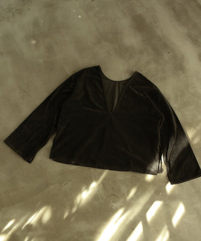 ◆BALI NATURAL DYE COLLECTION◆❝RE:COLOR❞ 【再生染めシリーズ】こちらの商品は、染色過程で色ムラやトーンの差が生じたアイテムに、RE:COLOR手法で新たな手法で新たな色を重ねた特別な一点です。廃棄することなく、もう一度手を加えることで素材が持つ新しい表情と魅力を引き出しました。本来販売予定ではなかったアイテムをWALANCEの新たな試みとして、特別価格でお届けします。染めの濃淡やトーンには個体差がございますが、それもひとつひとつの個性としてお楽しみください。 ◆DESIGN深いVネックが特徴のベロアプルオーバー。フロントとバックどちらを前にしても着用できる2WAY仕様です。同素材のパンツやスカートに合わせたセットアップスタイルもおすすめ。インした時にもたつきにくいよう、裾幅は少し小さめに仕上げています。 ◆FABRIC程よい厚みと上品な光沢のあるベロア素材を使用。滑らかで肌触りが良く、スウェットのような着心地はくつろぎの時間にも最適です。【草木染め商品につきまして】・天然の草木を使用し染色しております。染めから色止めまで全てナチュラルな素材を使用しているため洗濯や光などに弱く、使用を重ねるごとに変色します。・着用中の強い摩擦や、汗や雨等湿った状態での摩擦により他のものへ色移りしますので十分にご注意ください。・他の淡色(白物等)とのコーディネートはお避けください。色移りした場合はすぐに洗濯してください。 made in Indonesia