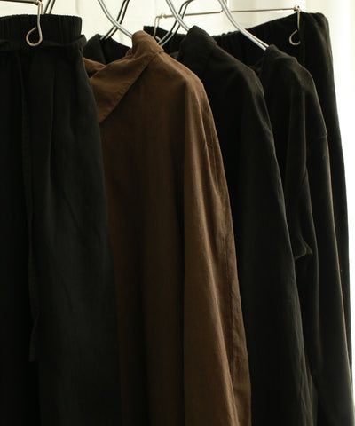 ◆BALI NATURAL DYE COLLECTION◆❝RE:COLOR❞ 【再生染めシリーズ】こちらの商品は、染色過程で色ムラやトーンの差が生じたアイテムに、RE:COLOR手法で新たな手法で新たな色を重ねた特別な一点です。廃棄することなく、もう一度手を加えることで素材が持つ新しい表情と魅力を引き出しました。本来販売予定ではなかったアイテムをWALANCEの新たな試みとして、特別価格でお届けします。染めの濃淡やトーンには個体差がございますが、それもひとつひとつの個性としてお楽しみください。 ◆DESIGNワイドなストレートシルエットがどんなアイテムともあわせやすいベロアパンツ。ウエストはゴム+同色に染めたコットンのドローコードでフィット感を調整できます。ベロアの柔らかな光沢でカジュアルなスタイルも品よくまとまる大人のワイドパンツです。 ◆FABRIC程よい厚みと上品な光沢のあるベロア素材を使用。滑らかで肌触りが良く、スウェットのような着心地はくつろぎの時間にも最適です。【草木染め商品につきまして】・天然の草木を使用し染色しております。染めから色止めまで全てナチュラルな素材を使用しているため洗濯や光などに弱く、使用を重ねるごとに変色します。・着用中の強い摩擦や、汗や雨等湿った状態での摩擦により他のものへ色移りしますので十分にご注意ください。・他の淡色(白物等)とのコーディネートはお避けください。色移りした場合はすぐに洗濯してください。 made in Indonesia 2025FW