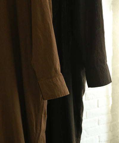 ◆BALI NATURAL DYE COLLECTION◆❝RE:COLOR❞ 【再生染めシリーズ】こちらの商品は、染色過程で色ムラやトーンの差が生じたアイテムに、RE:COLOR手法で新たな手法で新たな色を重ねた特別な一点です。廃棄することなく、もう一度手を加えることで素材が持つ新しい表情と魅力を引き出しました。本来販売予定ではなかったアイテムをWALANCEの新たな試みとして、特別価格でお届けします。染めの濃淡やトーンには個体差がございますが、それもひとつひとつの個性としてお楽しみください。 ◆DESIGNラグランスリーブのシャツドレス。共生地のコードでウエストを絞れるスタイル。裾は深めのサイドスリットを施し、抜け感を加えました。程よくゆとりを持たせたロングシルエットでリラクシーに着こなせます。フロントボタンを開けて羽織りとしても。カフスボタンで袖口のサイズを調整可能です。 ◆FABRICヘンプは耐水性や吸湿性に優れ、抗菌性、紫外線カット効果など…天然素材でありながら多くの機能が備わっているのが特徴。少しの水で育ち、栽培過程で化学肥料や農薬を必要としないため、環境にやさしい素材としても注目されています。 〈HEMP×ORG COTTON〉・ヘンプのハリとコットンの滑らかさを備えた柔らかな風合い・吸湿、速乾性にすぐれた快適な着心地 ※天然繊維を使用しているため、織りスジや色ムラ・ネップが見られることがあります。素材の特性としてご了承ください。 made in Indonesia2025FW