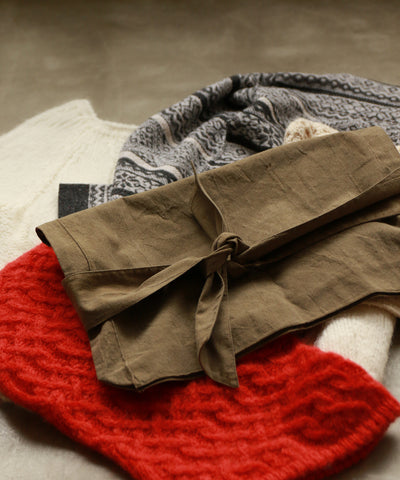 boiled wool scarf ◆DESIGN袖が付いたようなデザインのニットスカーフ。ショールとして肩に掛けたり、首やウエストに巻いたりと色んなアレンジでスタイリングにプラスできるアイテムです。体全体をしっかり包み込むサイズ感で、アウター代わりにざっくりと巻いても◎大判ながらもふんわり軽く仕上げています。 ◆FABRIC色彩豊かなネップが混ざった温かみのある風合い。RWS(Responsible Wool Standard)認証のエクストラファインメリノウールを使用した、保温性が高くて軽い、ソフトな肌触りが魅力です。 made in chinamodel H:176cmstaff H :166cm 2025FW